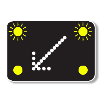 On the motorway, signs sometimes show temporary warnings due to traffic or weather conditions. They may be used to indicate • lane closures • temporary speed limits • weather warnings.